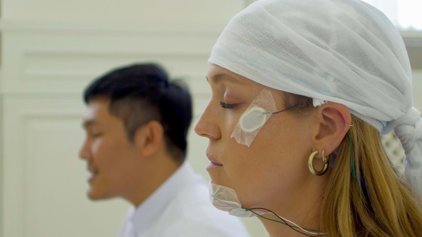Med 21 elektroder fordelt på mit hoved, ansigt og krop kører jeg op ad en lang smal grusvej, som fører mig til et kæmpestort rødt murstenshus. Dhammakaya Korsør Lystskov står der skrevet med store svungne guldbogstaver på facaden. Det ligner umiddelbart ikke et buddhistisk tempel, men det er det, og her skal jeg bo og meditere sammen med nogle thailandske munke de næste 24 timer, alt imens elektroderne måler min hjerneaktivitet. For hvad sker der egentlig med os, når vi lukker øjnene og mediterer?